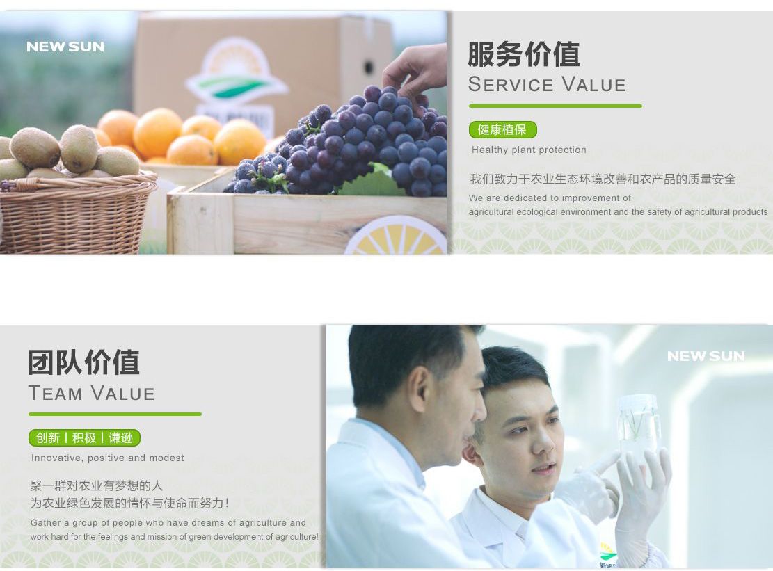 Chengdu Newsun is a biotechnology company focusing on agriculture for 20 years and has dreams and feelings for agriculture. We hope to become one of thegreatest biotechnology companies that affect global agriculture This persistence is based on our pursuit and respect for agricultura ecological environmentfriendliness, food safety and the realization of agricultural industry value promotion!